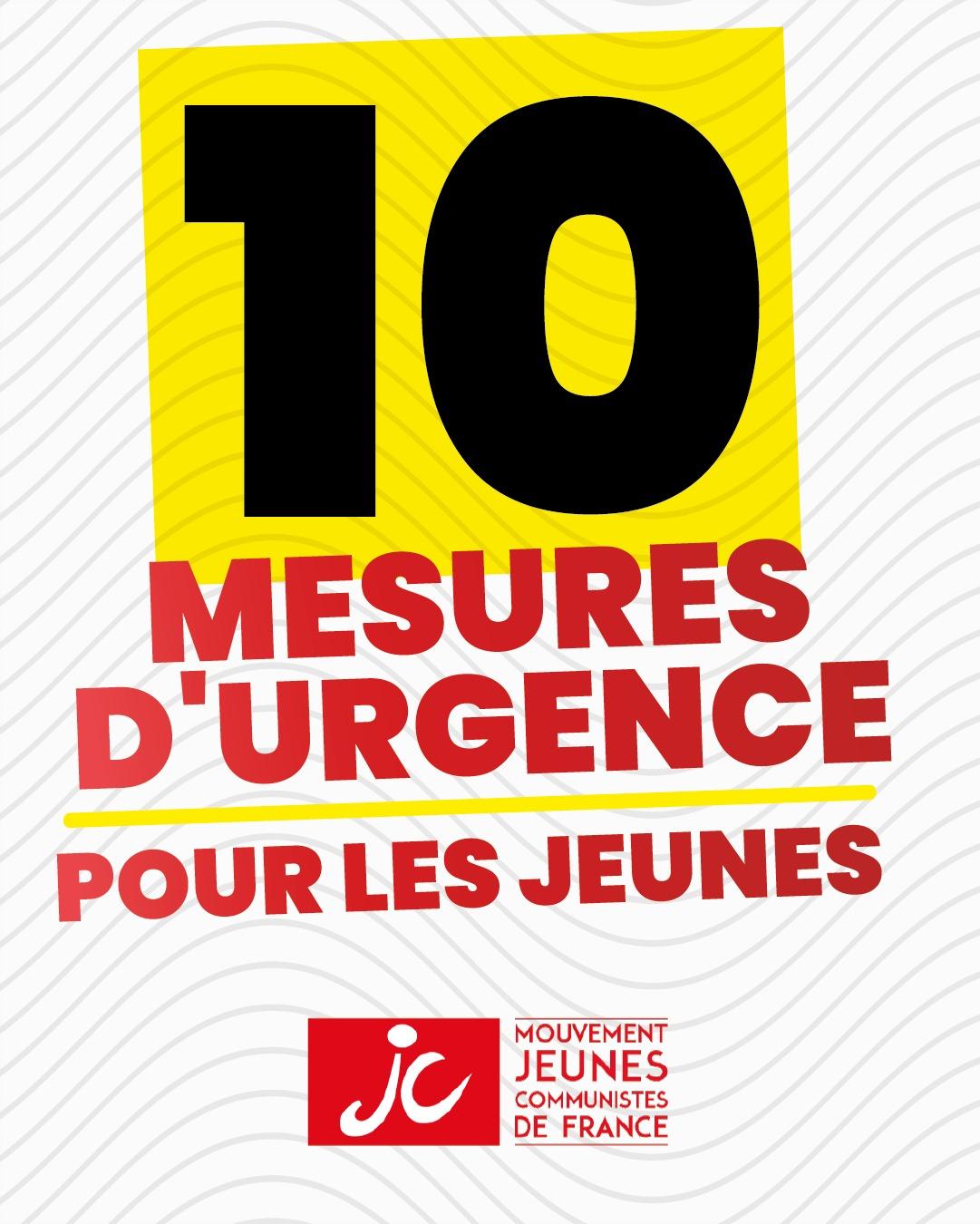Pour répondre aux besoins et aux aspirations des jeunes, le MJCF revendique 10 mesures d’urgence. Si tu partages ces revendications, ou même une partie d’entre elles, viens en discuter avec les jeunes communistes et engage toi pour changer notre quotidien !